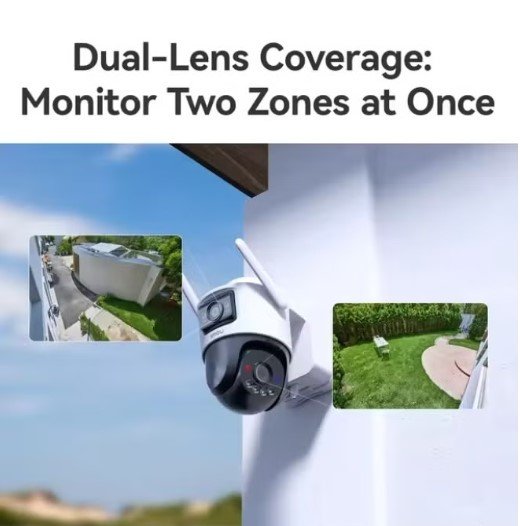 Cruiser Dual 2 10MP Outdoor Security Camera, Dual-Lens 5MP+5MP (Fixed & PTZ), Wi-Fi 6, Smart Color Night Vision, AI Human & Vehicle Detection, Two-Way Audio, IP66 Weatherproof, Red-Blue Active Deterrence Siren, Supports 512GB MicroSD